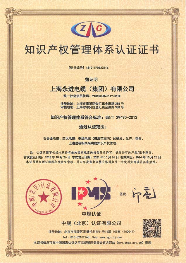 知識產(chǎn)權(quán)管理體系認(rèn)證證書