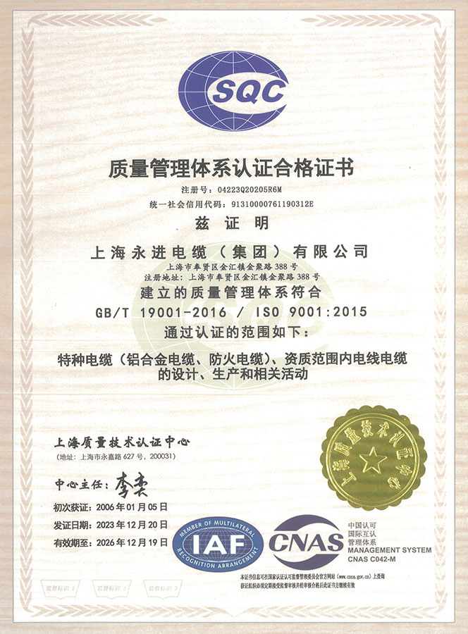 9001質(zhì)量管理體系證書