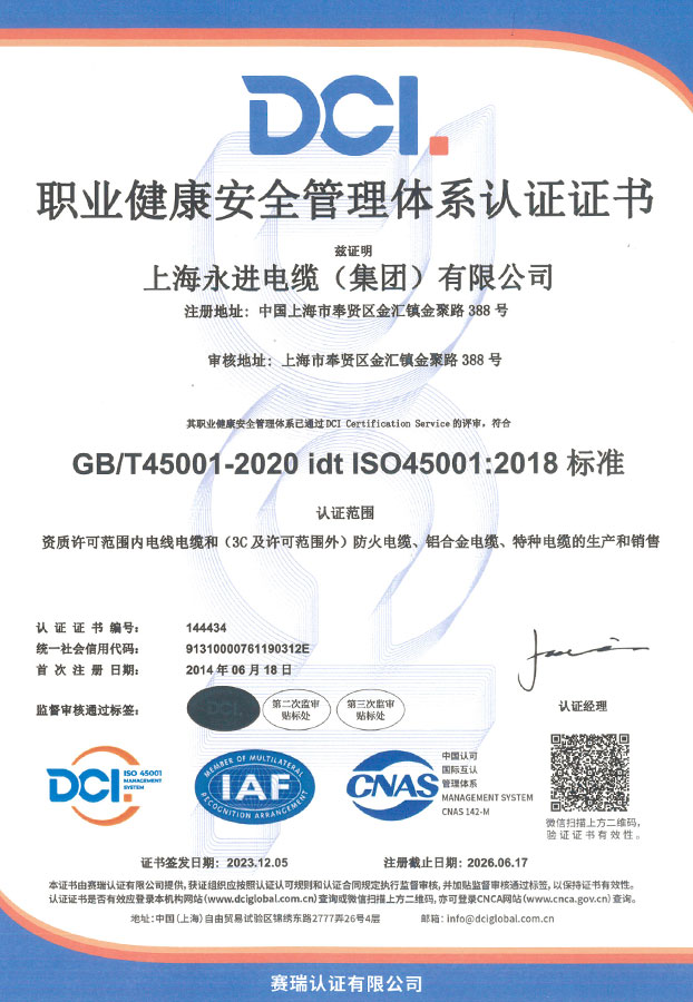 45001職業(yè)健康安全管理體系認證證書