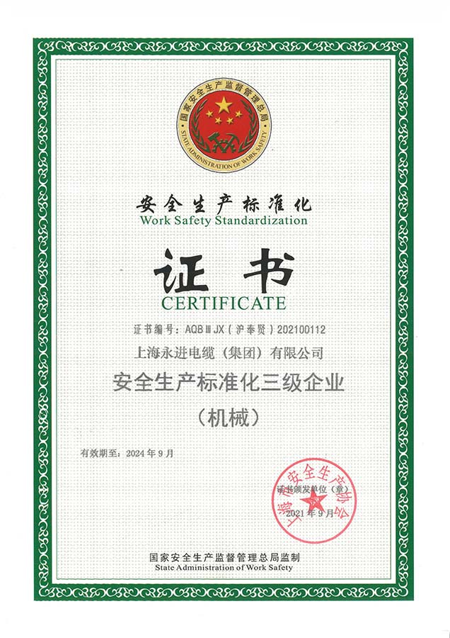 安全生產(chǎn)標準化證書